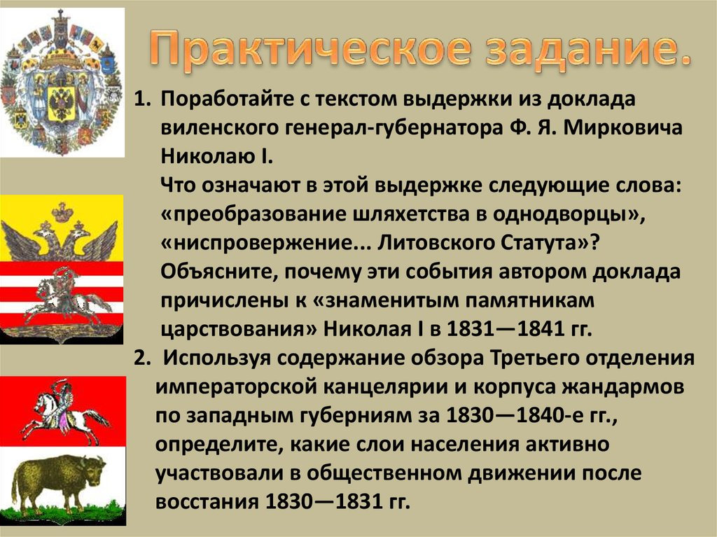 1. Поработайте с текстом выдержки из докладавиленского генерал-губернатора Ф. Я. Мирковича