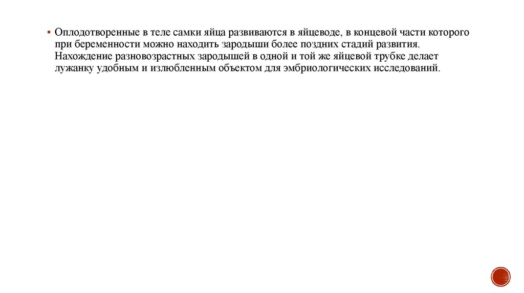 лужанку удобным и излюбленным объектом для эмбриологических исследований.