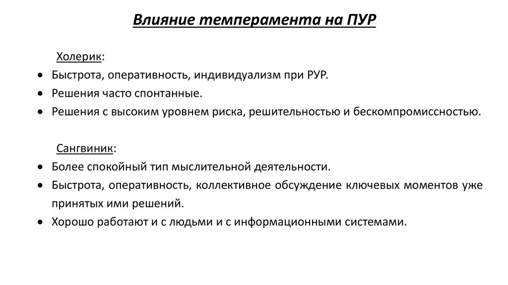 Влияние темперамента на ПУРХолерик: