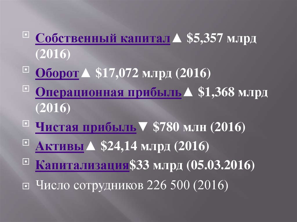Собственный капитал▲ $5,357 млрд(2016)