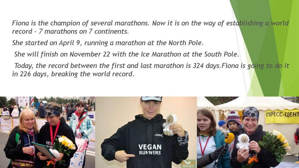 Fiona is the champion of several marathons. Now it is on the way of establishing a worldrecord - 7 marathons on 7 continents.