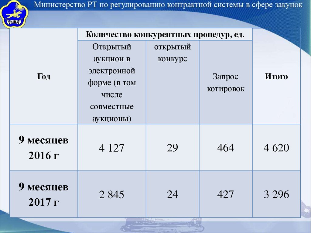 Краткая информация о закупочной деятельности Министерства Республики Тыва по регулированию контрактной системы в сфере закупок