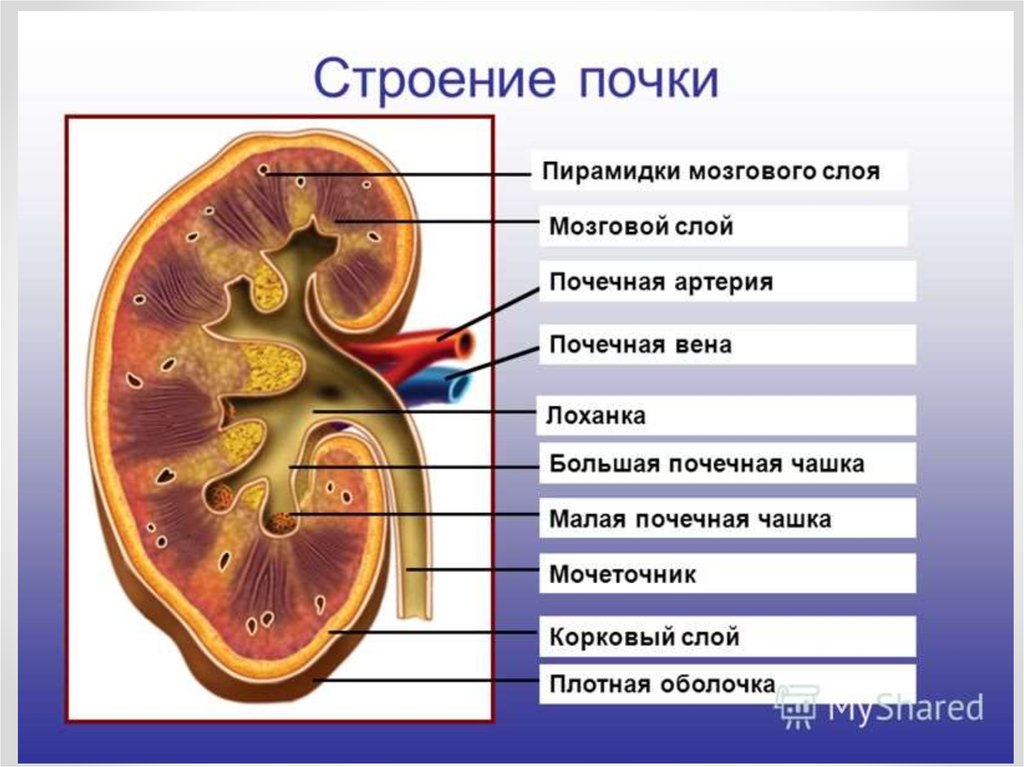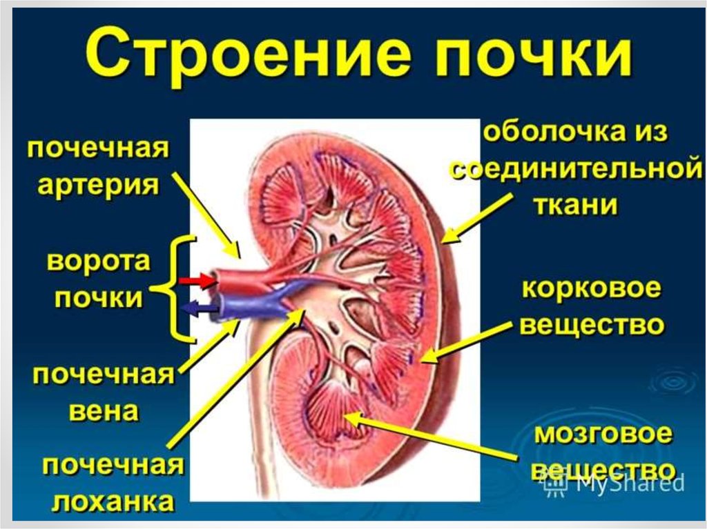 4. Почка – парный орган, бобовидной формы, цвет красно-бурый, поверхность гладкая