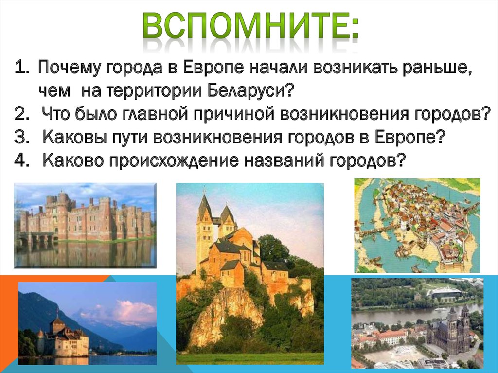 1. Почему города в Европе начали возникать раньше,чем на территории Беларуси?