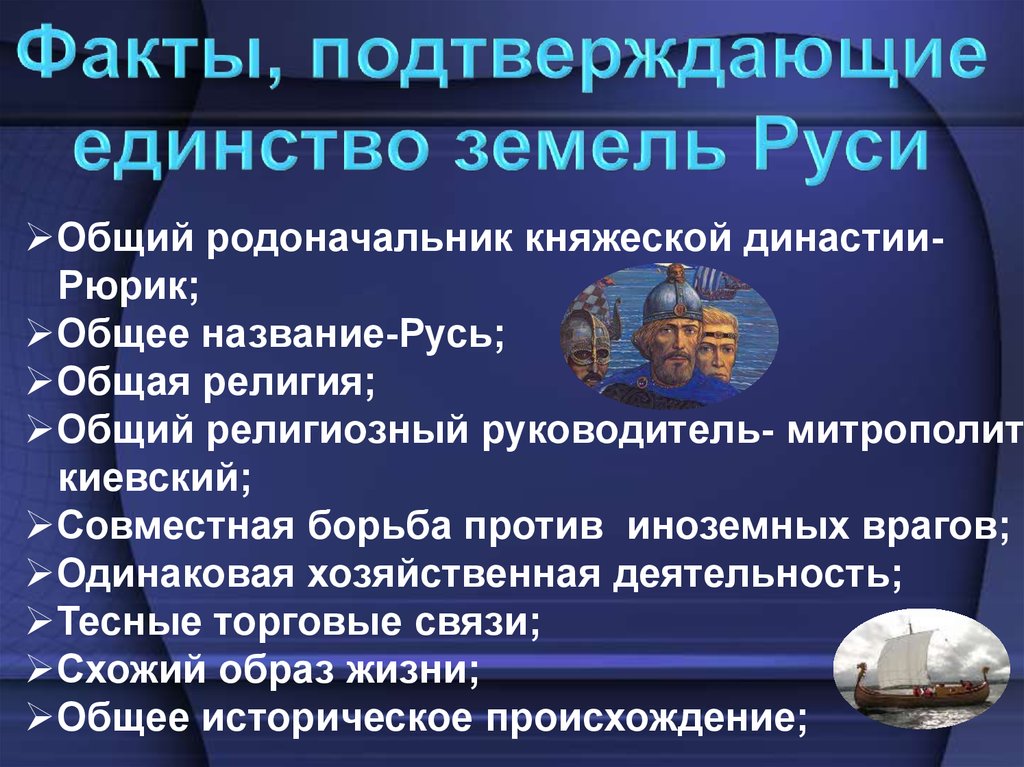 Общий родоначальник княжеской династииРюрик;Общее название-Русь;
