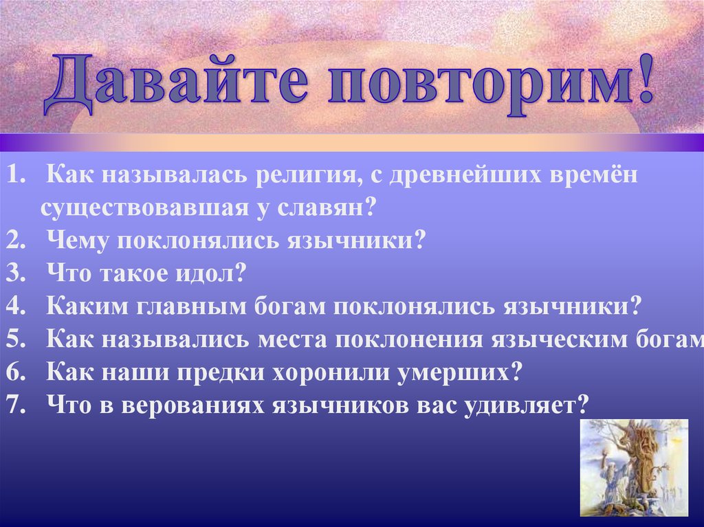 1. Как называлась религия, с древнейших времёнсуществовавшая у славян?