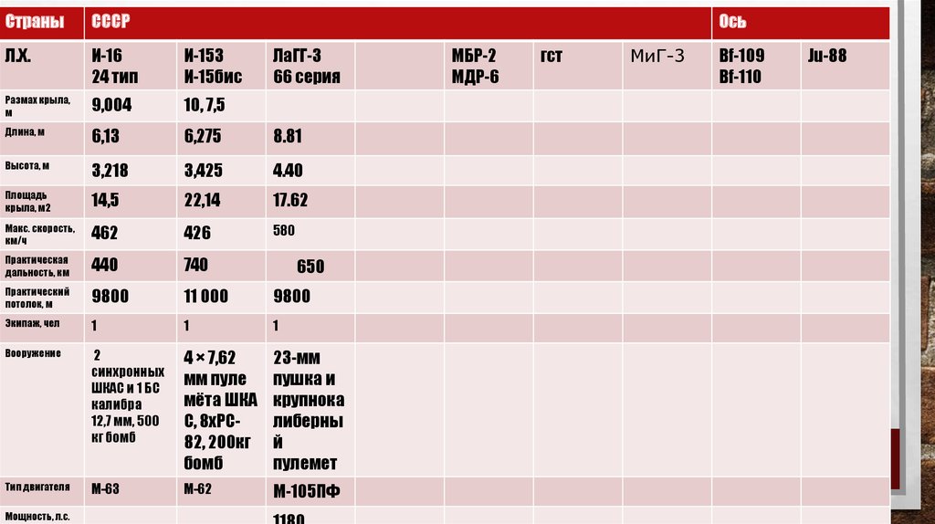 5. Тех. Характернистики бомбардировщиков СССр и германии на зф
