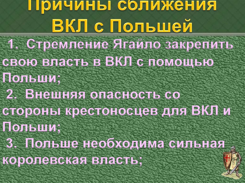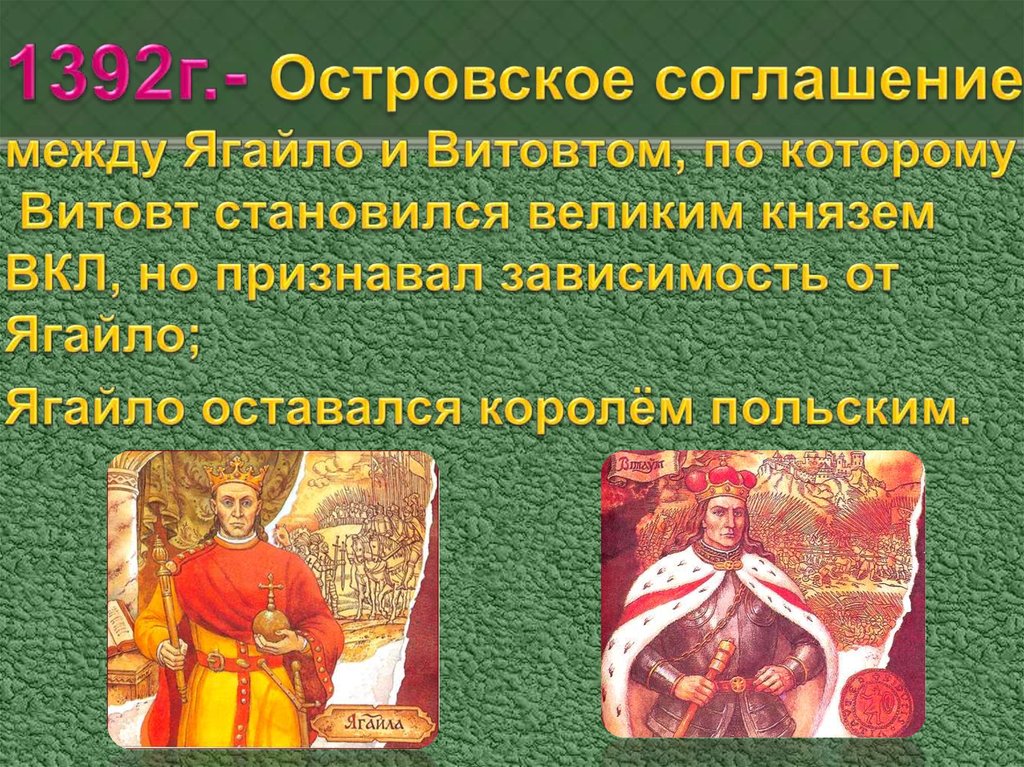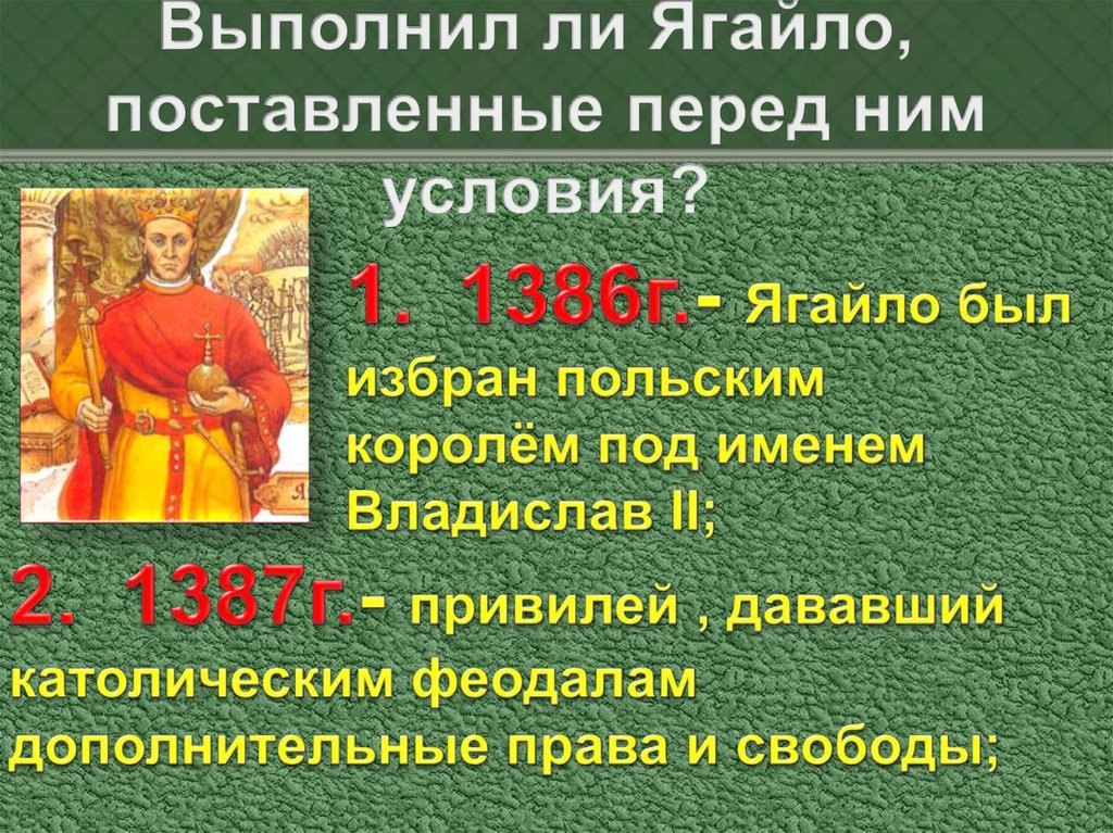 1. Стремление Ягайло закрепитьсвою власть в ВКЛ с помощью