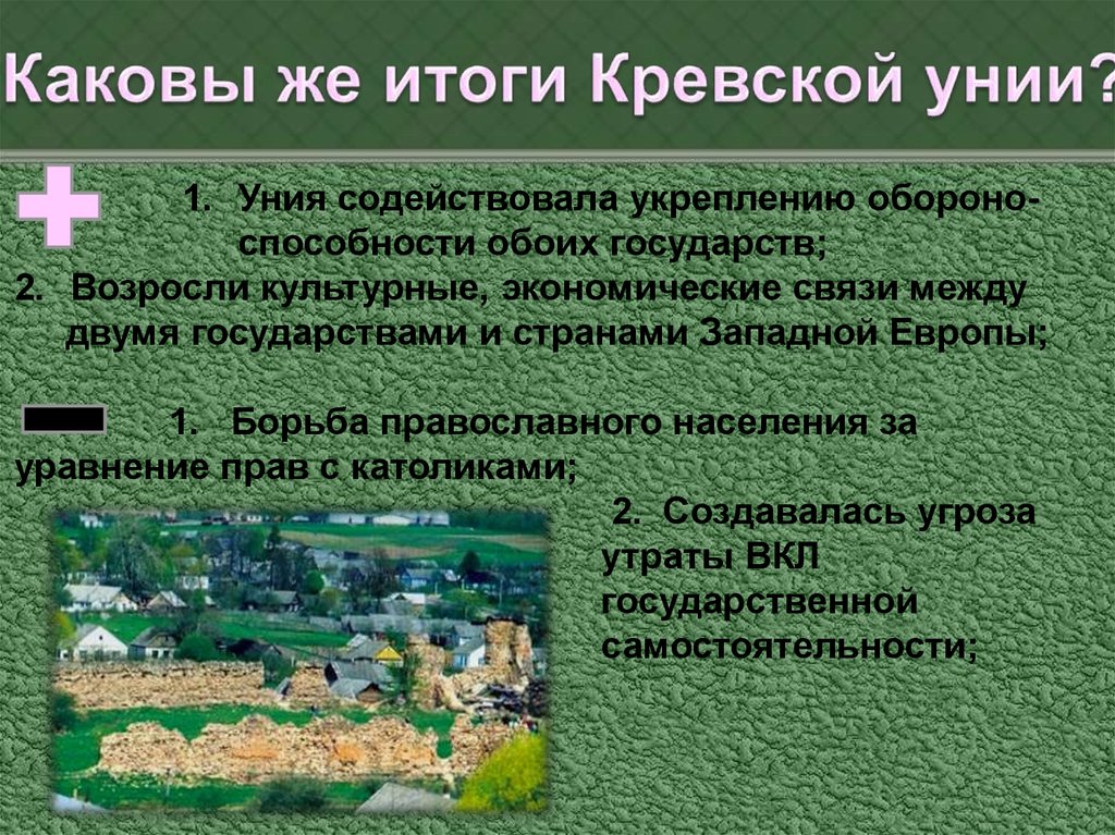 1. Уния содействовала укреплению обороноспособности обоих государств;2. Возросли культурные, экономические связи между