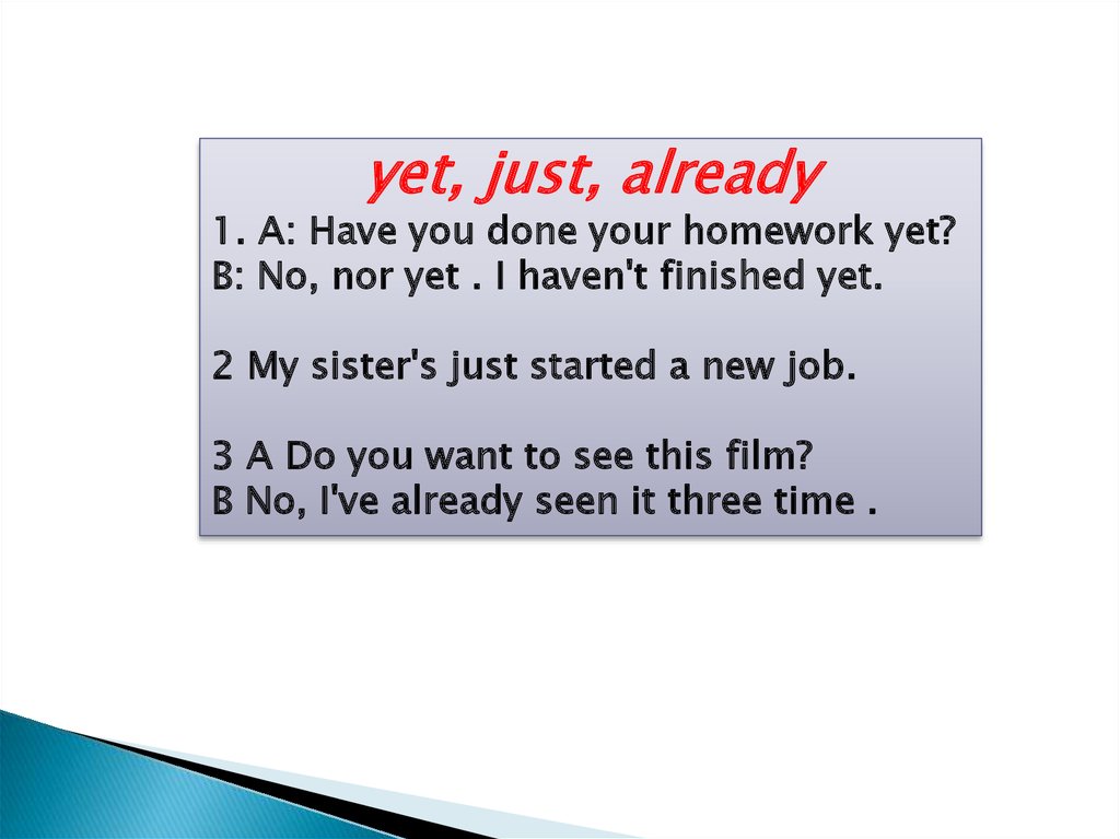 1.Use yet in[l- and [?]sentences to ask ifsomething has happened or to say if something