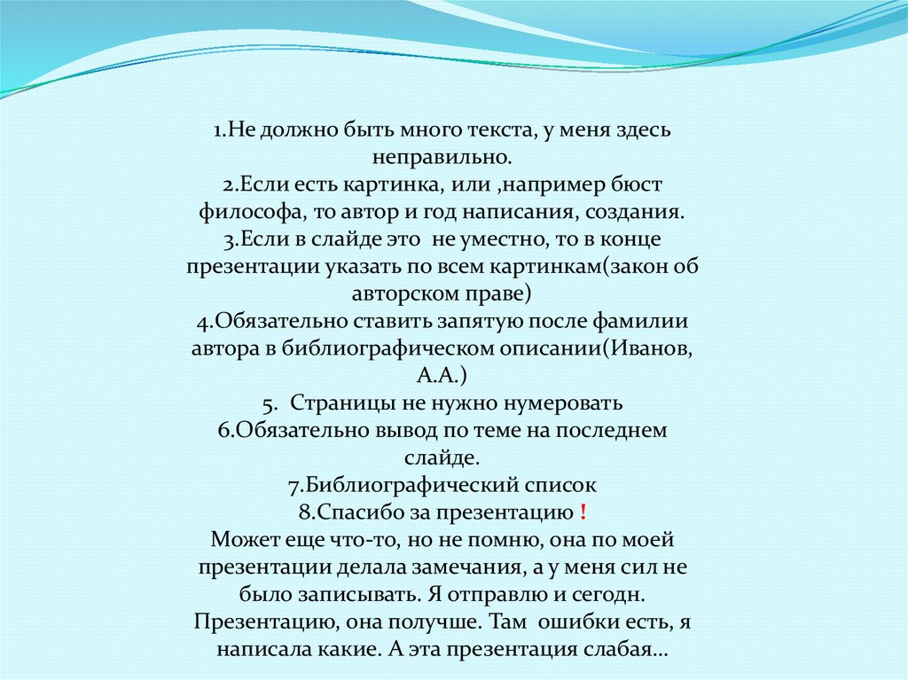 презентации делала замечания, а у меня сил не