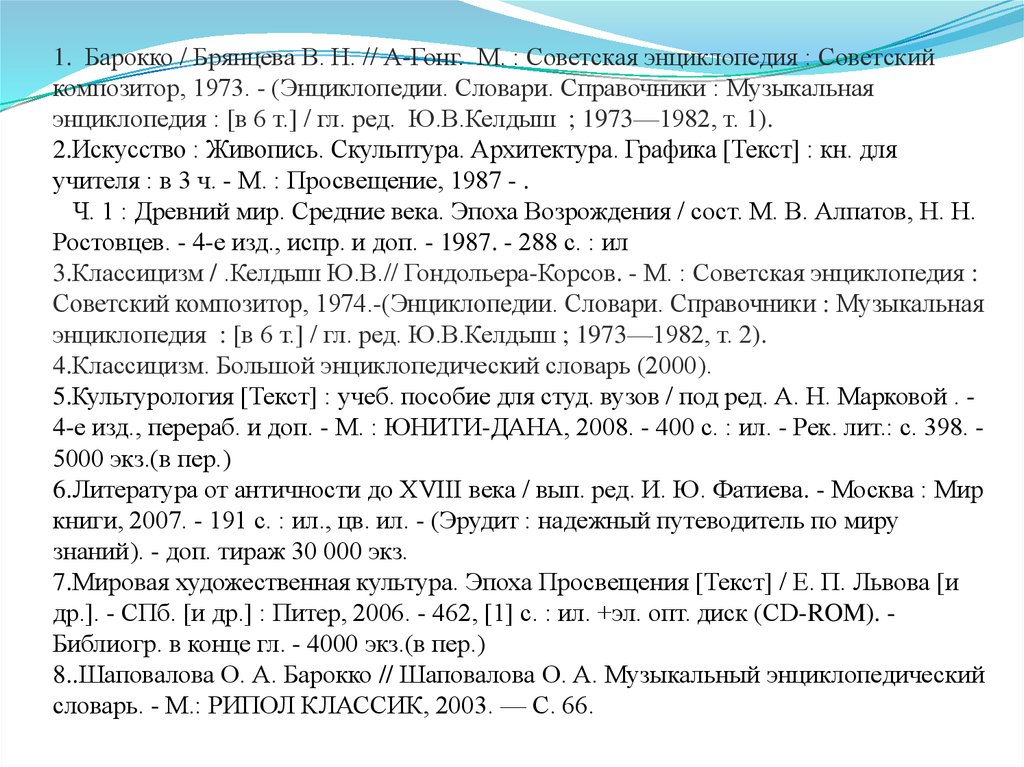 8..Шаповалова О. А. Барокко // Шаповалова О. А. Музыкальный энциклопедический