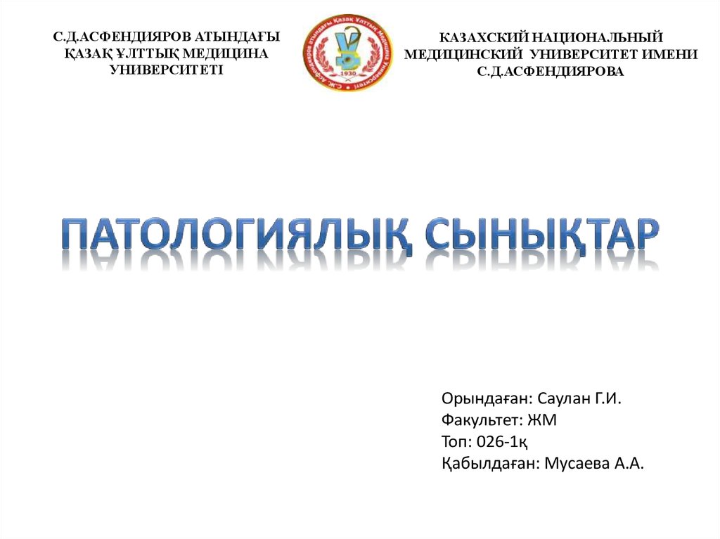 С.Д.АСФЕНДИЯРОВ АТЫНДАҒЫҚАЗАҚ ҰЛТТЫҚ МЕДИЦИНА