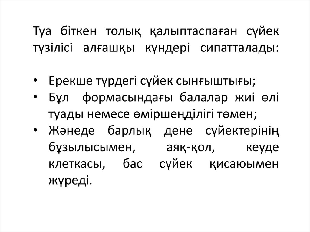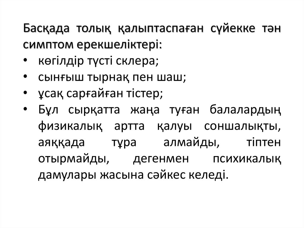 Басқада толық қалыптаспаған сүйекке тәнсимптом ерекшеліктері: