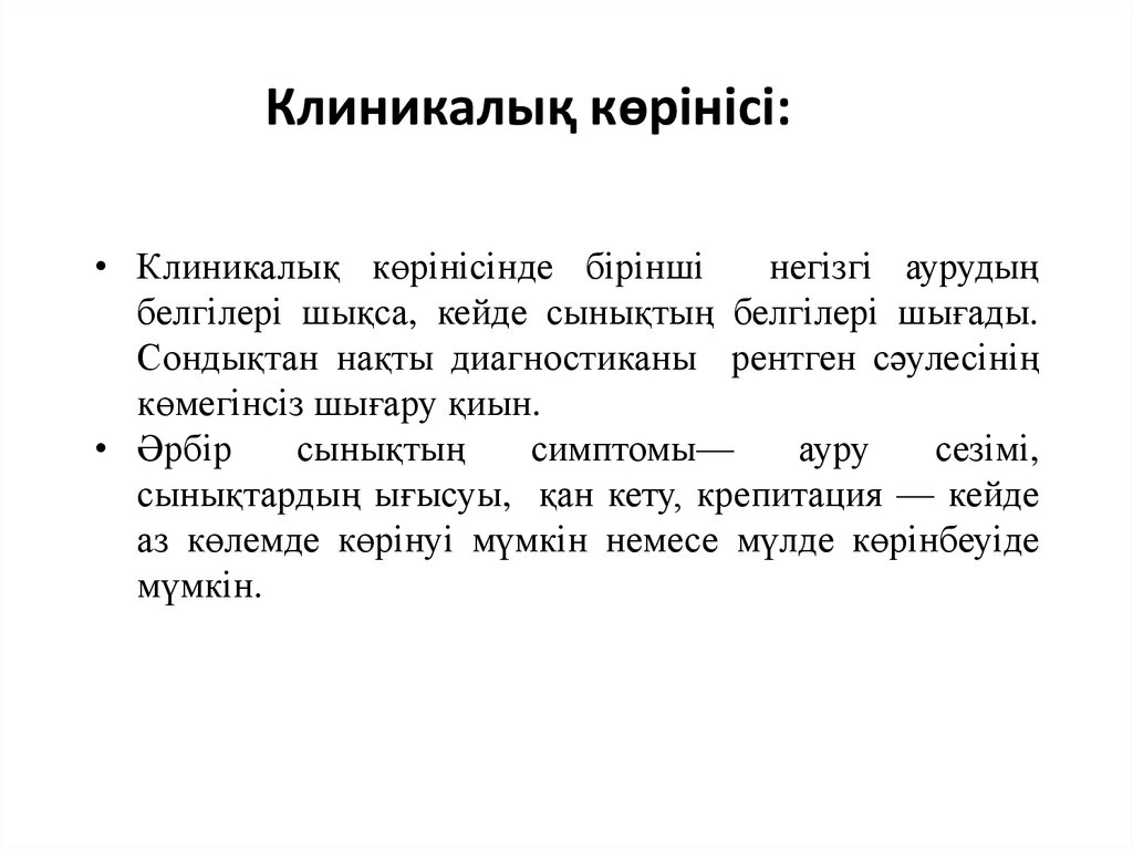 Клиникалық көрінісі:• Клиникалық көрінісінде бірінші