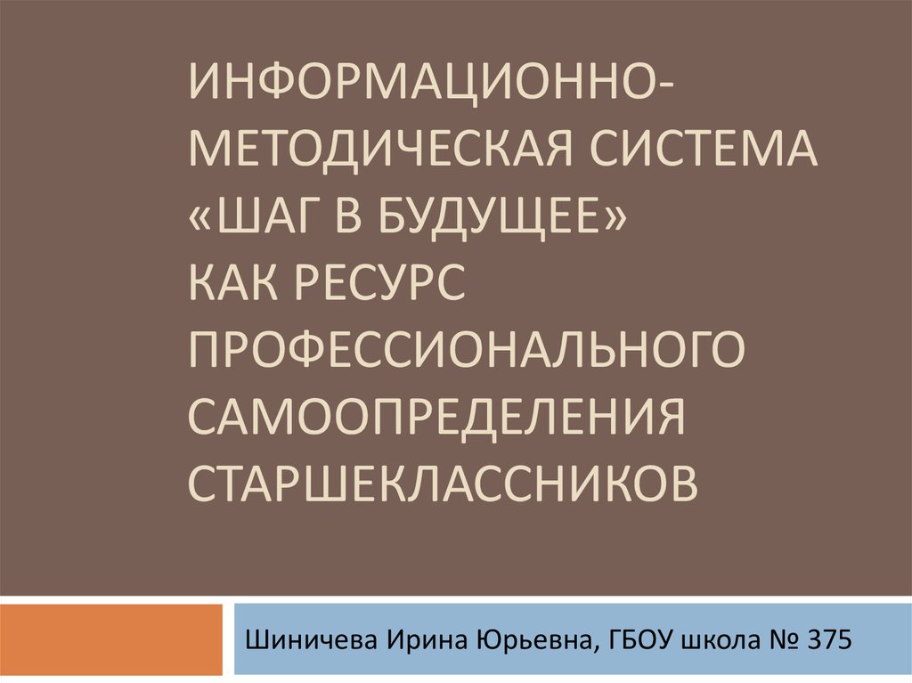 1. Информационно-методическая система «Шаг в будущее» как ресурс профессионального самоопределения старшеклассников