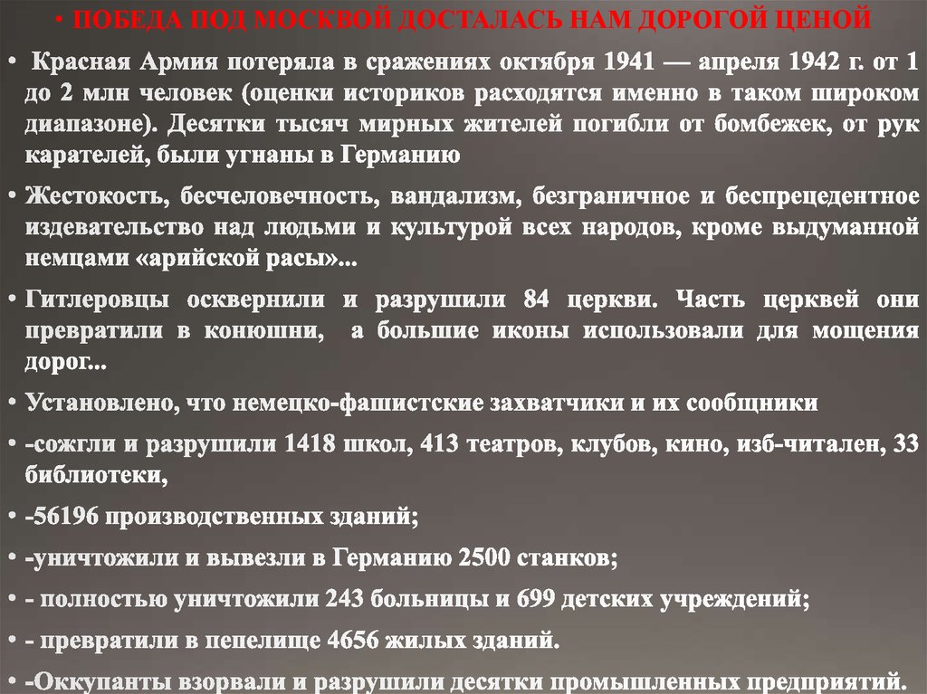 • ПОБЕДА ПОД МОСКВОЙ ДОСТАЛАСЬ НАМ ДОРОГОЙ ЦЕНОЙ