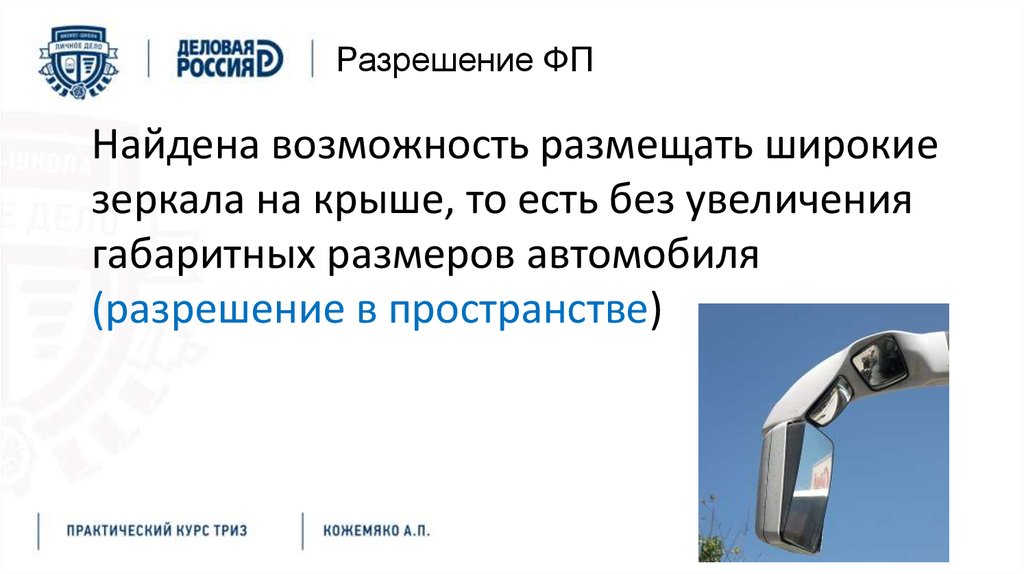 ПримерУвеличение размера автомобильного зеркала заднего вида, приводит к