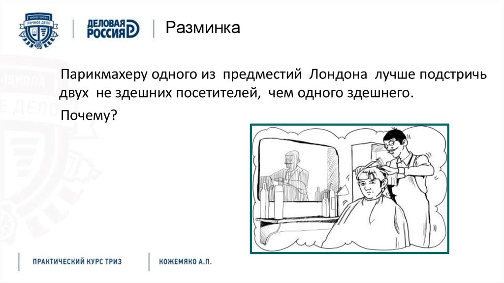 РазминкаПарикмахеру одного из предместий Лондона лучше подстричь