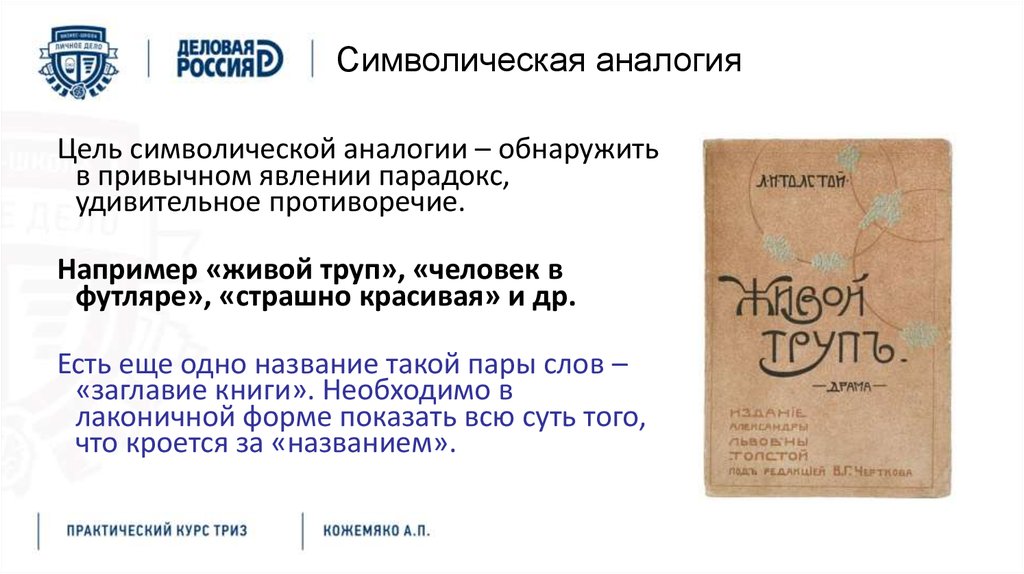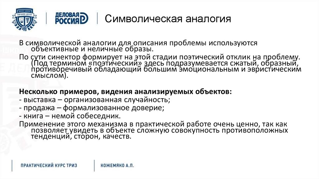 2) Придумайте символическую аналогию по вашей задаче. Можно ли с
