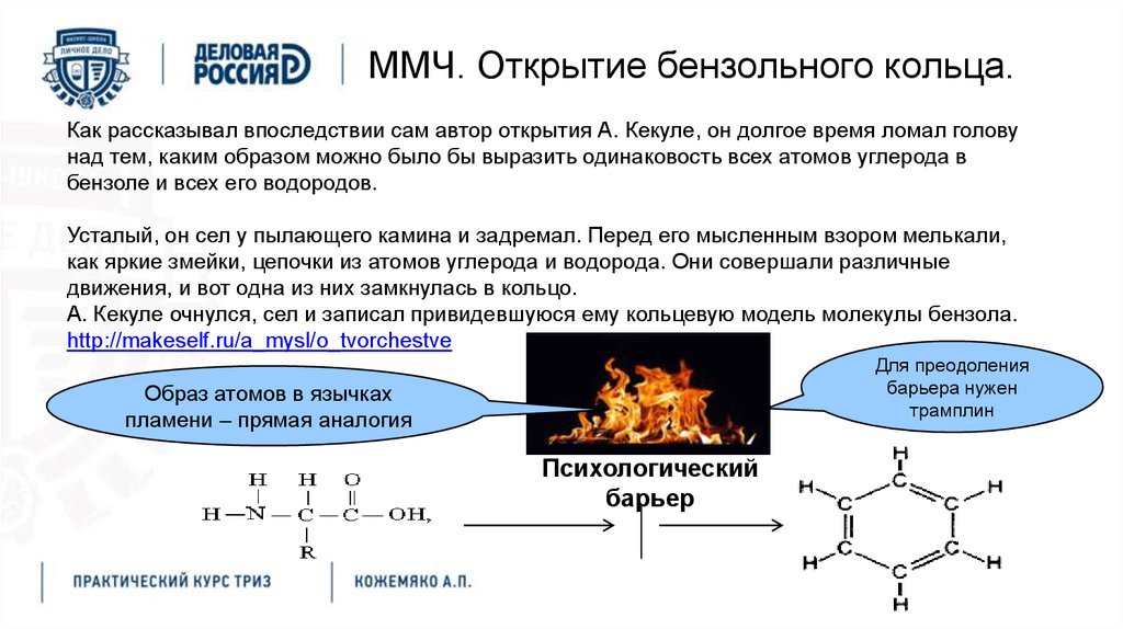 ММЧ. Открытие бензольного кольца.Как рассказывал впоследствии сам автор открытия А. Кекуле, он долгое время ломал голову
