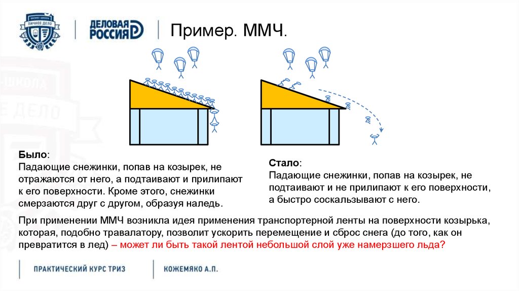 При применении ММЧ возникла идея применения транспортерной ленты на поверхности козырька,