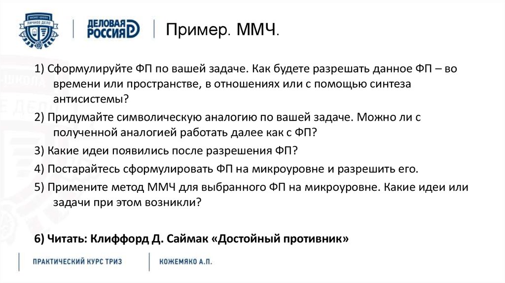 4) Постарайтесь сформулировать ФП на микроуровне и разрешить его.