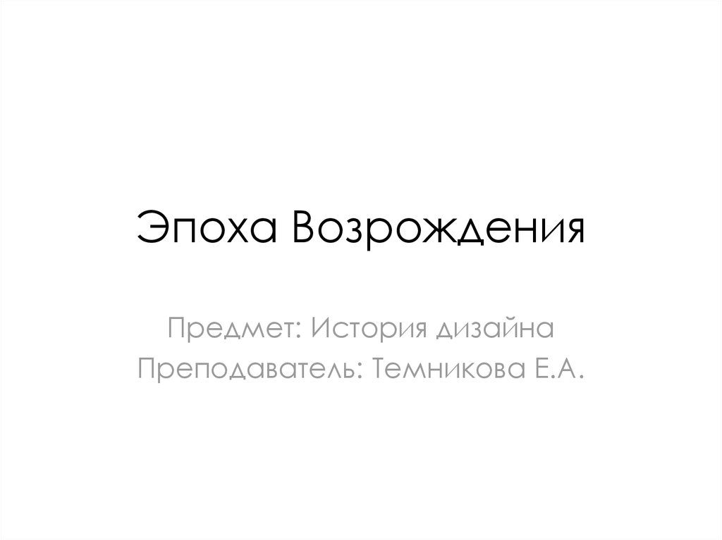 1. Эпоха Возрождения