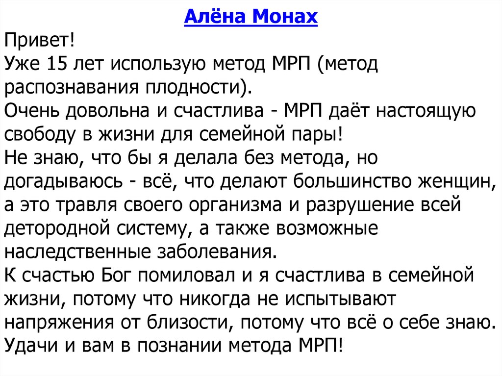 Удачи и вам в познании метода МРП!