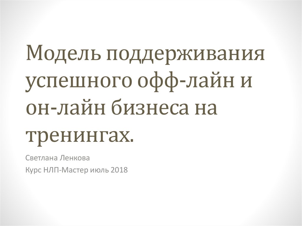 1. Модель поддерживания успешного офф-лайн и он-лайн бизнеса на тренингах.
