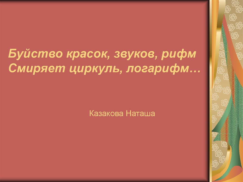 1. Буйство красок, звуков, рифм Смиряет циркуль, логарифм… Казакова Наташа