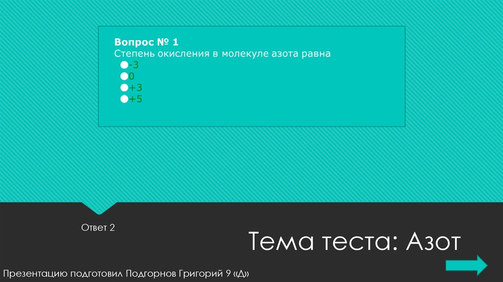 Ответ 1Тема теста: Азот