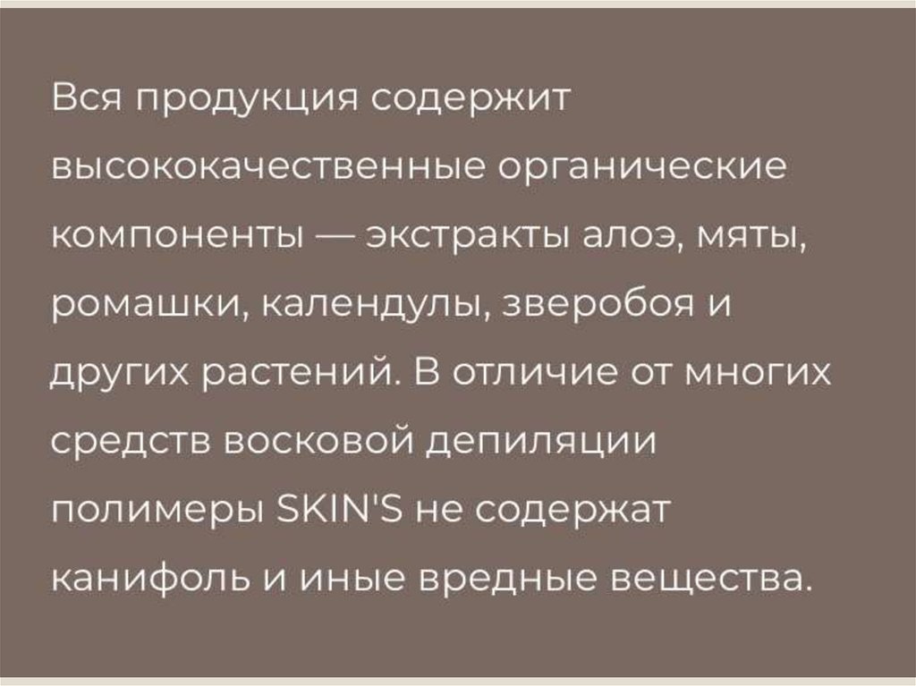 Skin's- депиляция- это симбиозвысокотехнологичных полимеров и