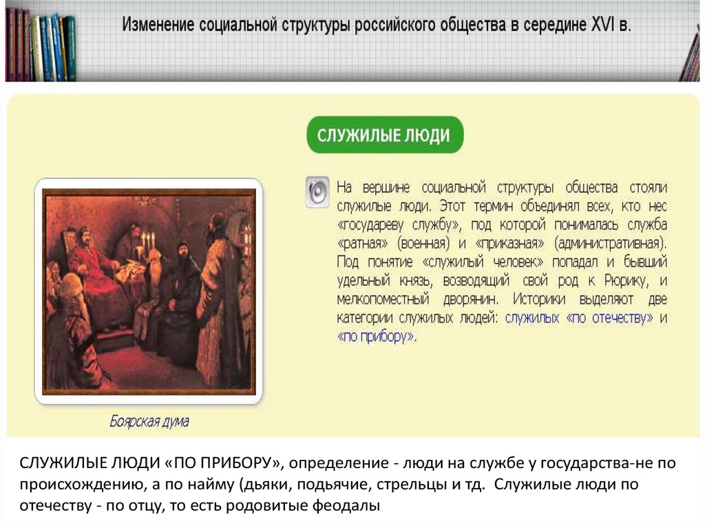 СЛУЖИЛЫЕ ЛЮДИ «ПО ПРИБОРУ», определение - люди на службе у государства-не попроисхождению, а по найму (дьяки, подьячие, стрельцы и тд. Служилые люди по