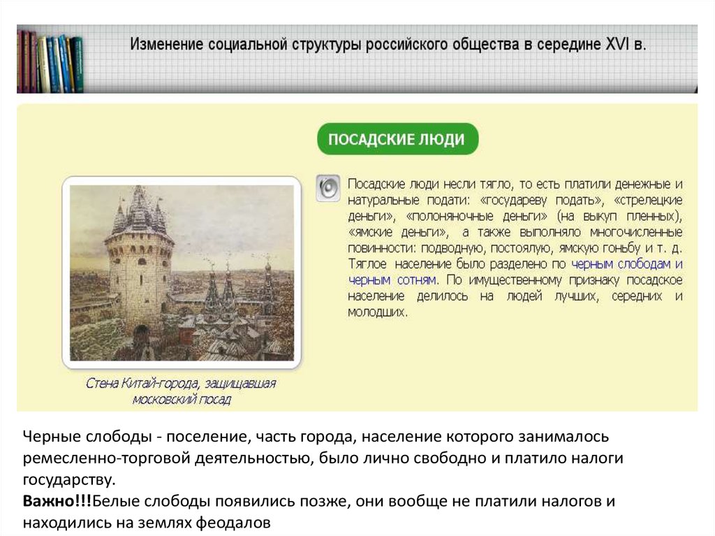 Важно!!!Белые слободы появились позже, они вообще не платили налогов и