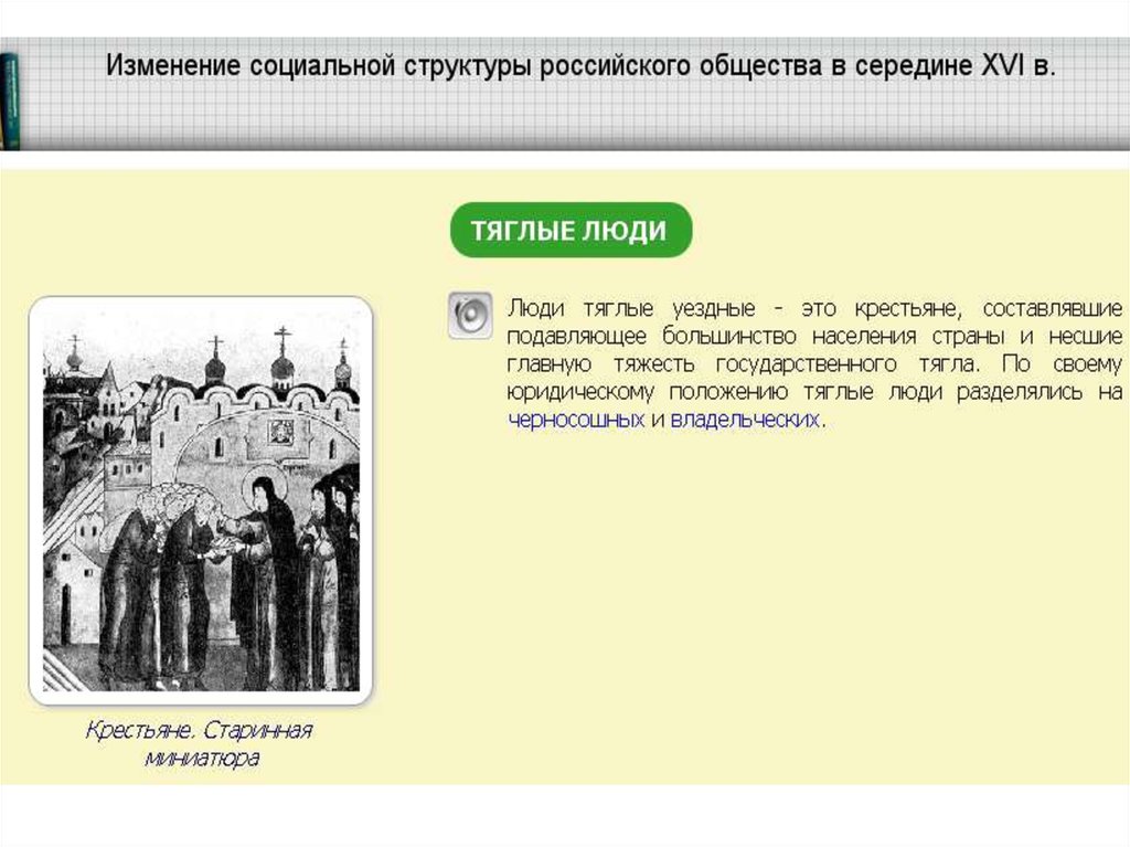 Черные слободы - поселение, часть города, население которого занималосьремесленно-торговой деятельностью, было лично свободно и платило налоги