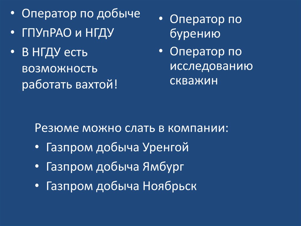 • Оператор по добыче• ГПУпРАО и НГДУ