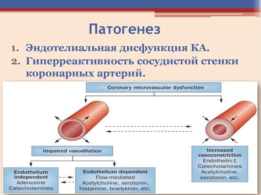 Патогенез1. Эндотелиальная дисфункция КА.