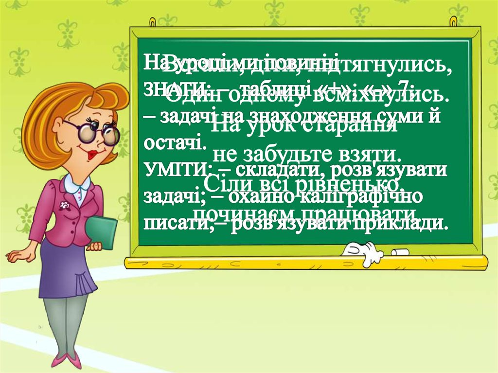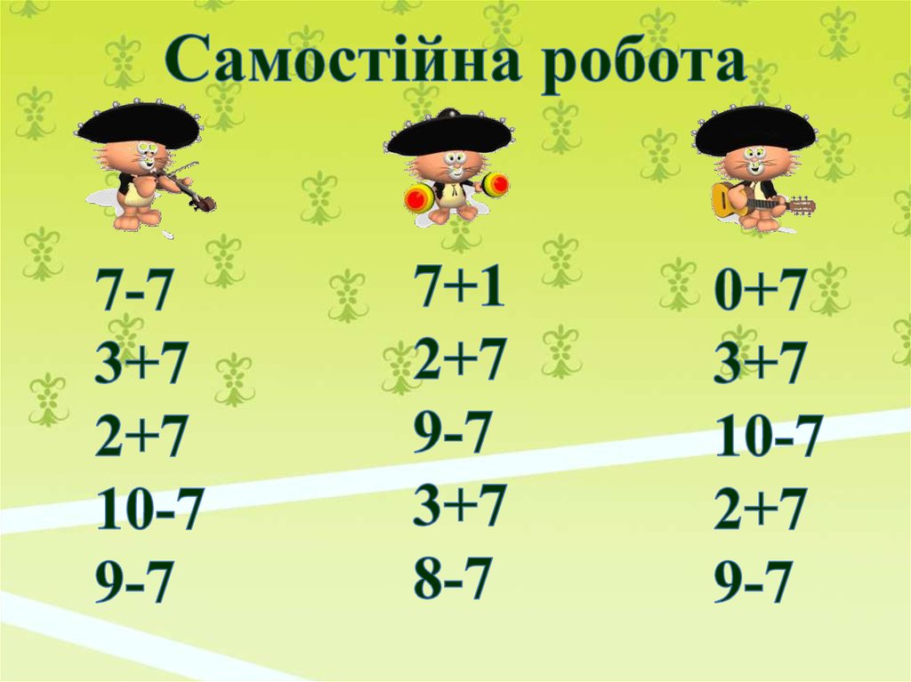 Вправи на засвоєння таблиці додавання і віднімання числа 7
