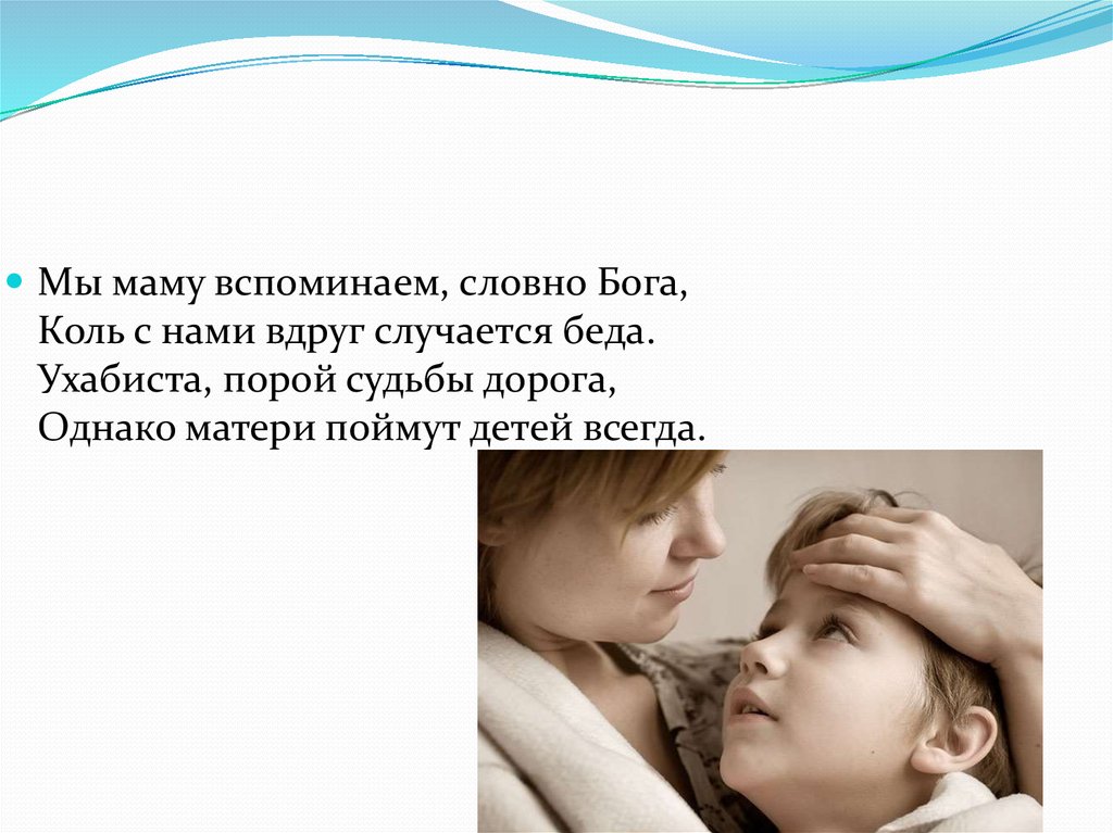 Мы маму вспоминаем, словно Бога,Коль с нами вдруг случается беда.