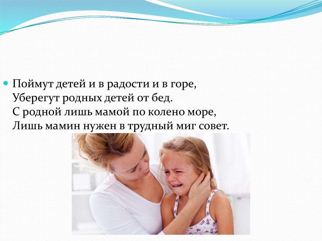 Поймут детей и в радости и в горе,Уберегут родных детей от бед.