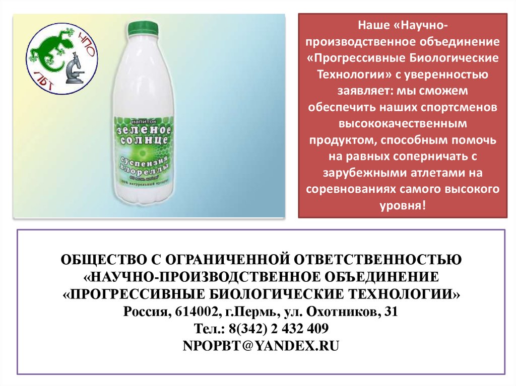 Наше «Научнопроизводственное объединение«Прогрессивные Биологические