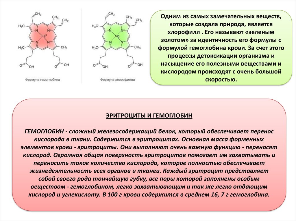 присутствии которых хлорофилл, попадая в кровоток, насыщает кровь
