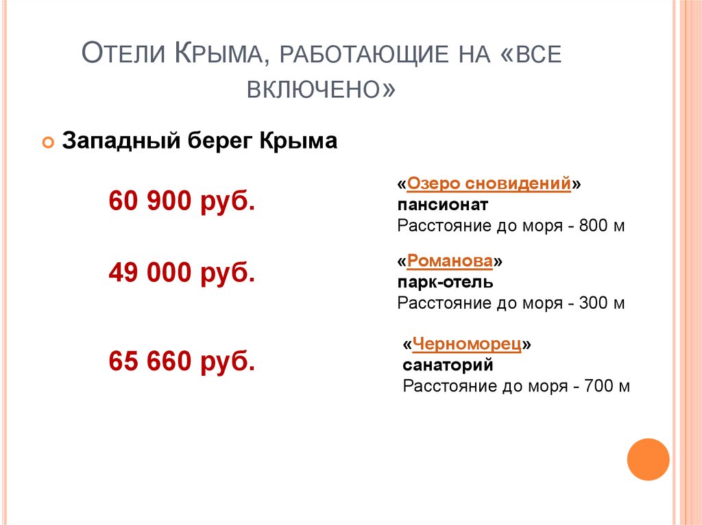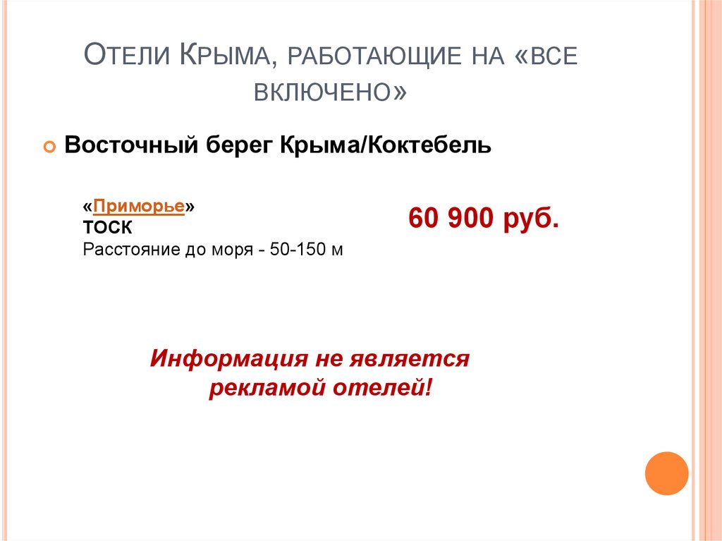 ОТЕЛИ КРЫМА, РАБОТАЮЩИЕНА «ВСЕ ВКЛЮЧЕНО»
