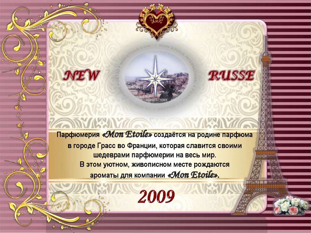 Парфюмерия «Mon Etoile» создаётся на родине парфюмав городе Грасс во Франции, которая славится своими