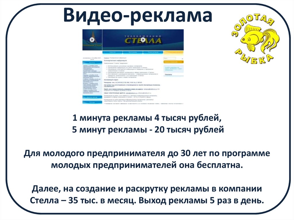 Видео-реклама1 минута рекламы 4 тысяч рублей,