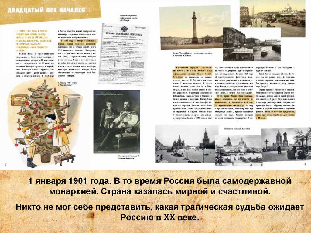 1 января 1901 года. В то время Россия была самодержавноймонархией. Страна казалась мирной и счастливой.