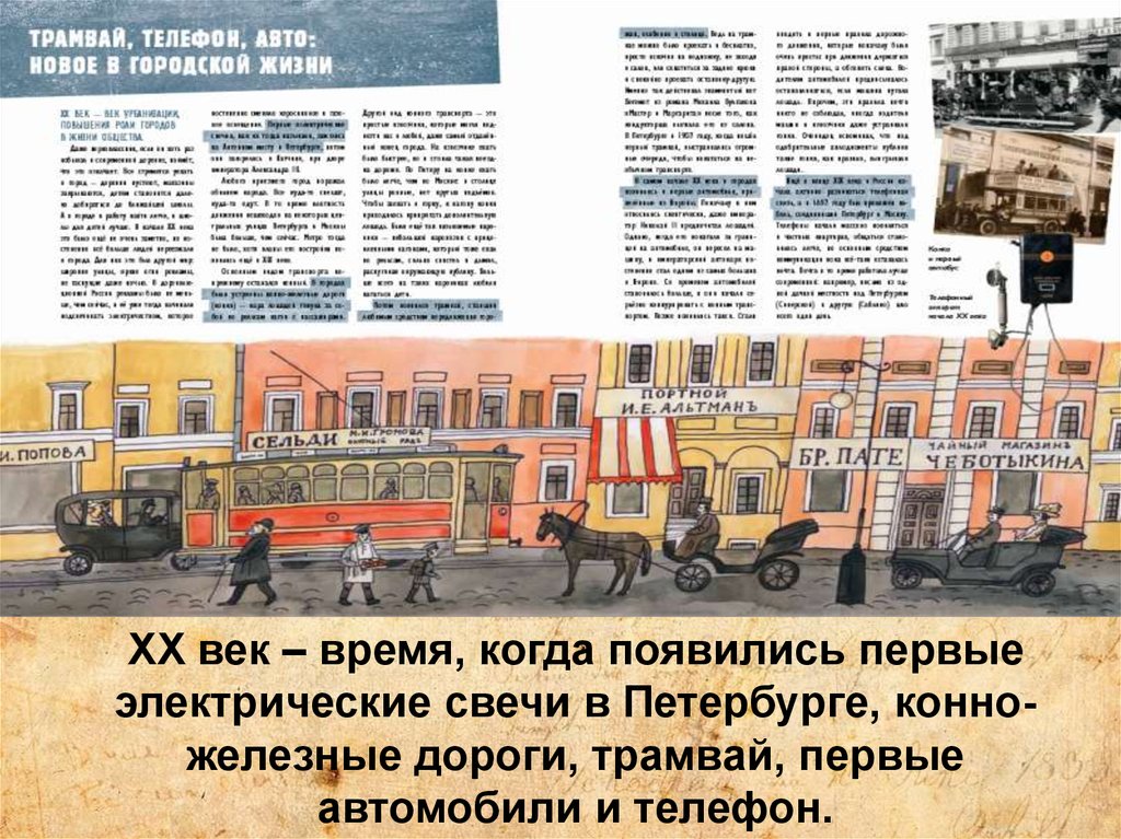 ХХ век – время, когда появились первыеэлектрические свечи в Петербурге, конножелезные дороги, трамвай, первые