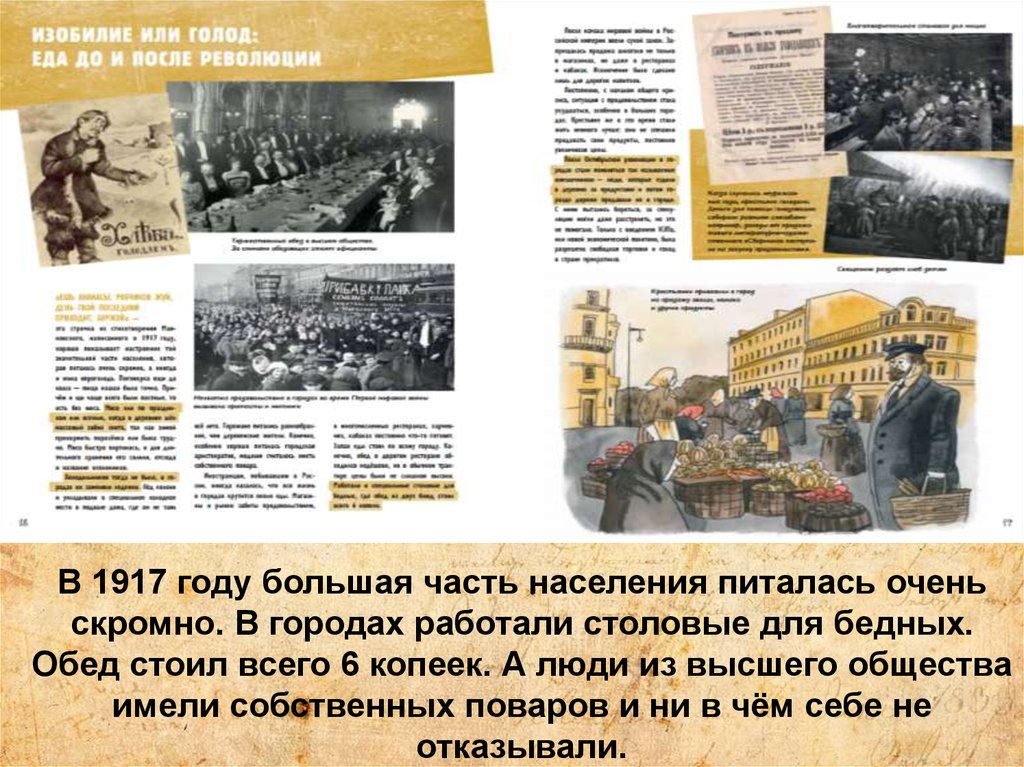 В 1917 году большая часть населения питалась оченьскромно. В городах работали столовые для бедных.