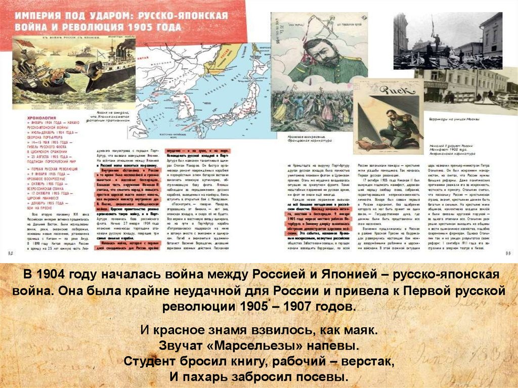 В 1904 году началась война между Россией и Японией – русско-японскаявойна. Она была крайне неудачной для России и привела к Первой русской